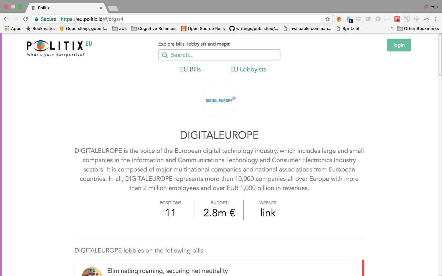 process I founded the project with two political scientists based out of Brussels, Belgium, the heart of the European Union. The project has been driven by the clear view on how to make a parliament's work transparent. We believe building a social graph of all market forces and visualizing the connections will eventually break up traditional we vs them concepts and dynamics politics and allow for a more result oriented instead of folklore oriented collaboration. We implemented the project for the European Parliament (https://eu.politix.io) first and got funded by Advocate Europe in 2015. Since then we have grown the project as a non for profit organization and presented at the re:publica 2017 in Berlin.